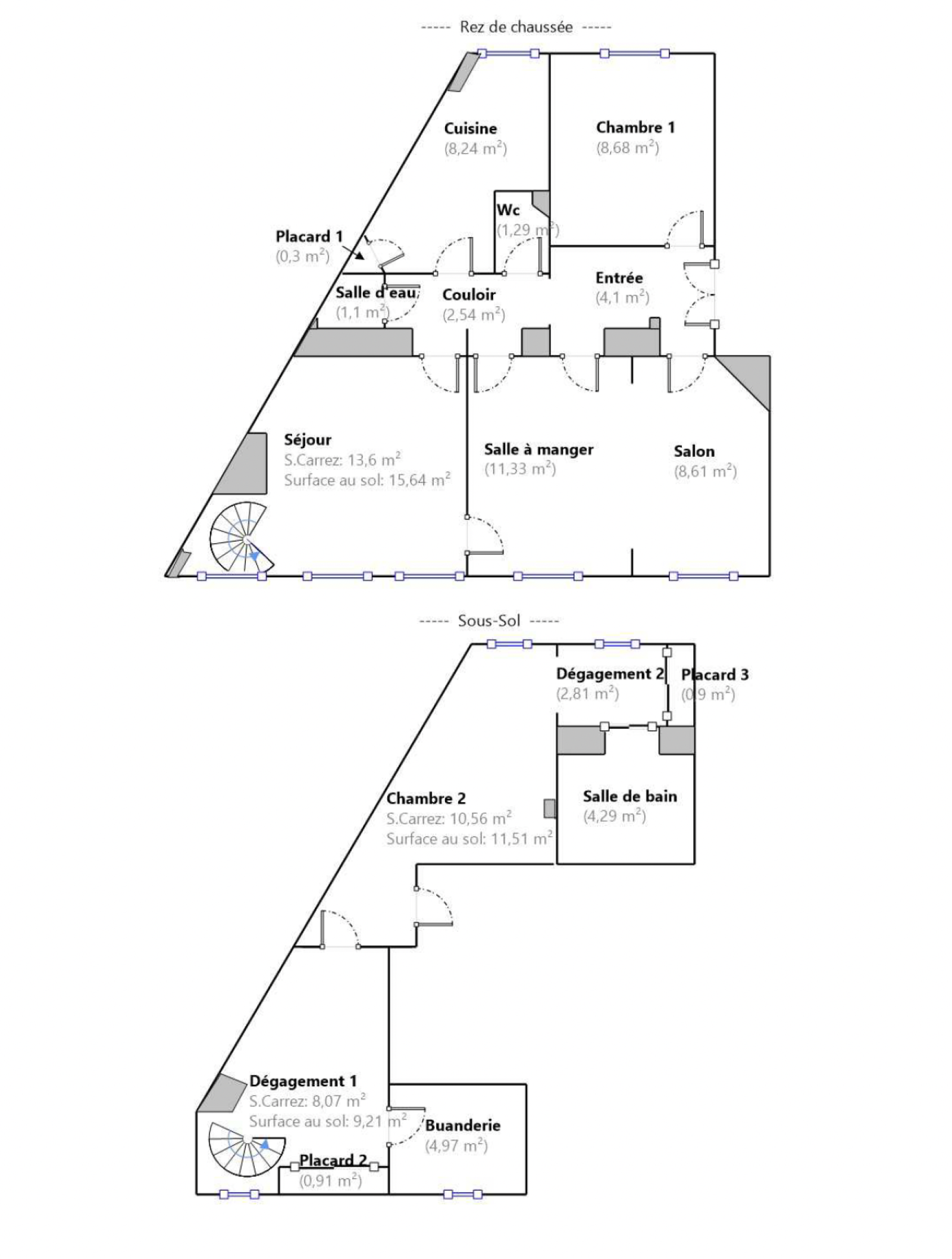 Découvrez ce charmant appartement en souplex, situé dans un immeuble ancien bien tenu, offrant une superficie de 92,30 m² surface loi Carrez.