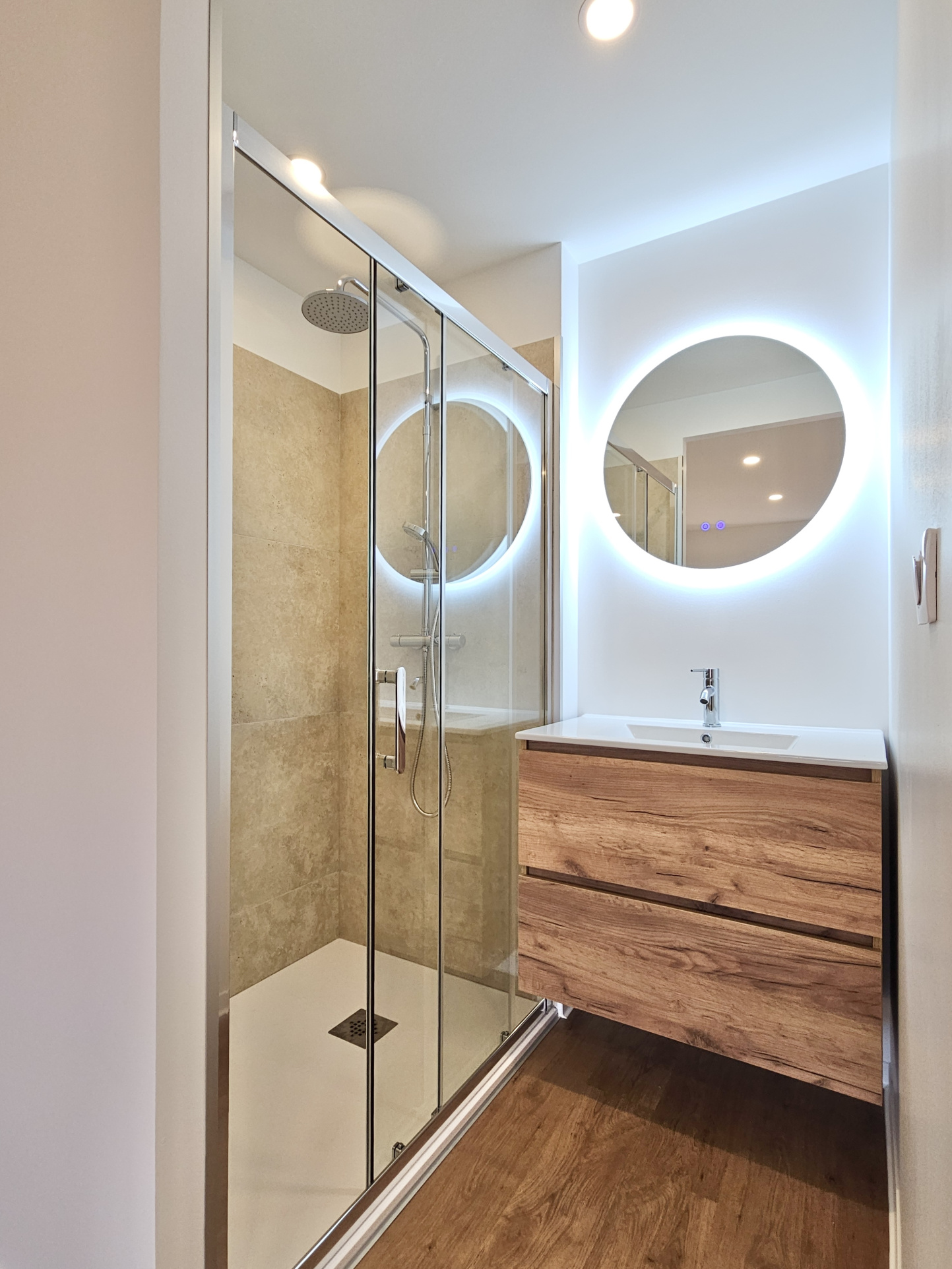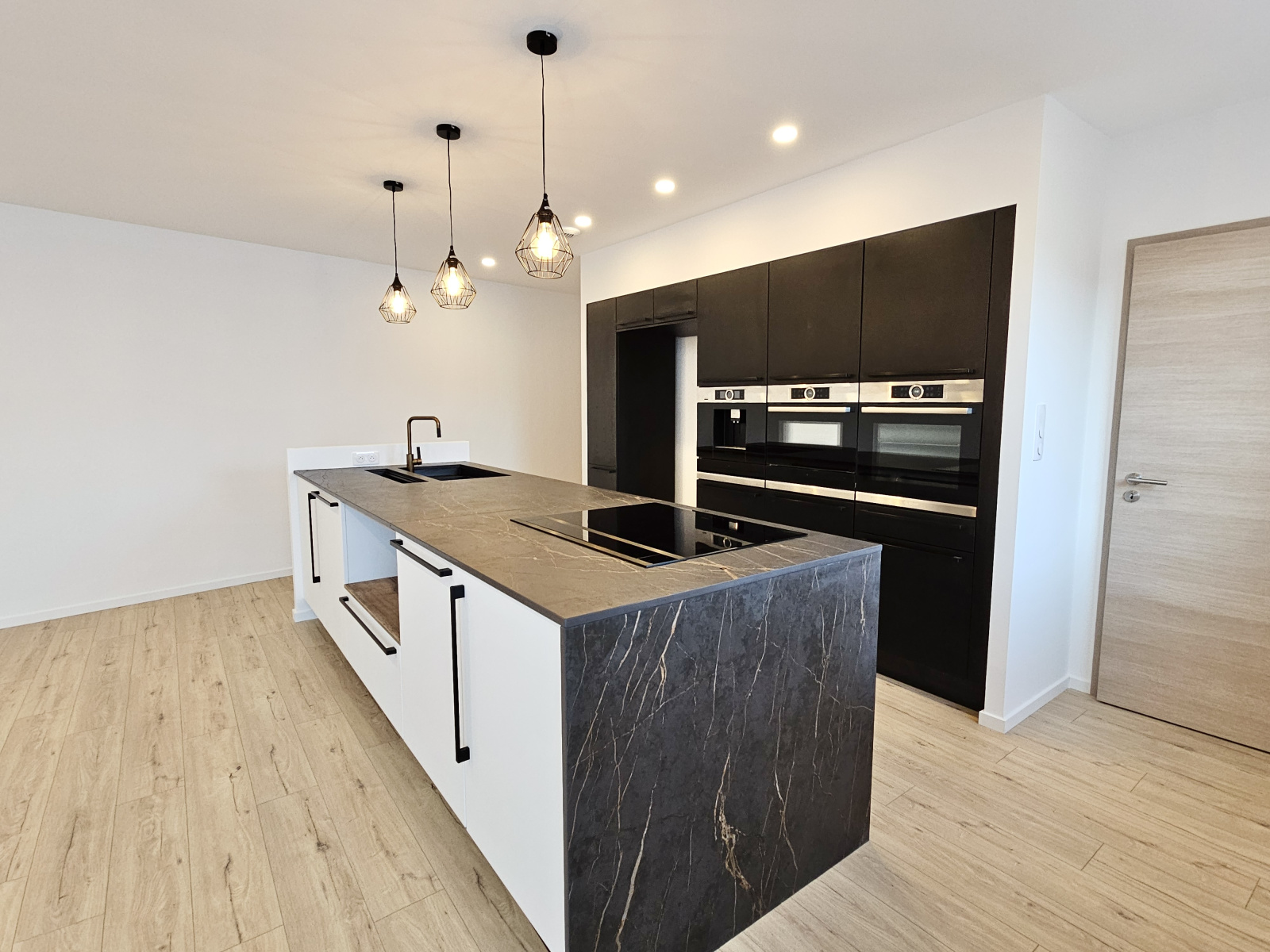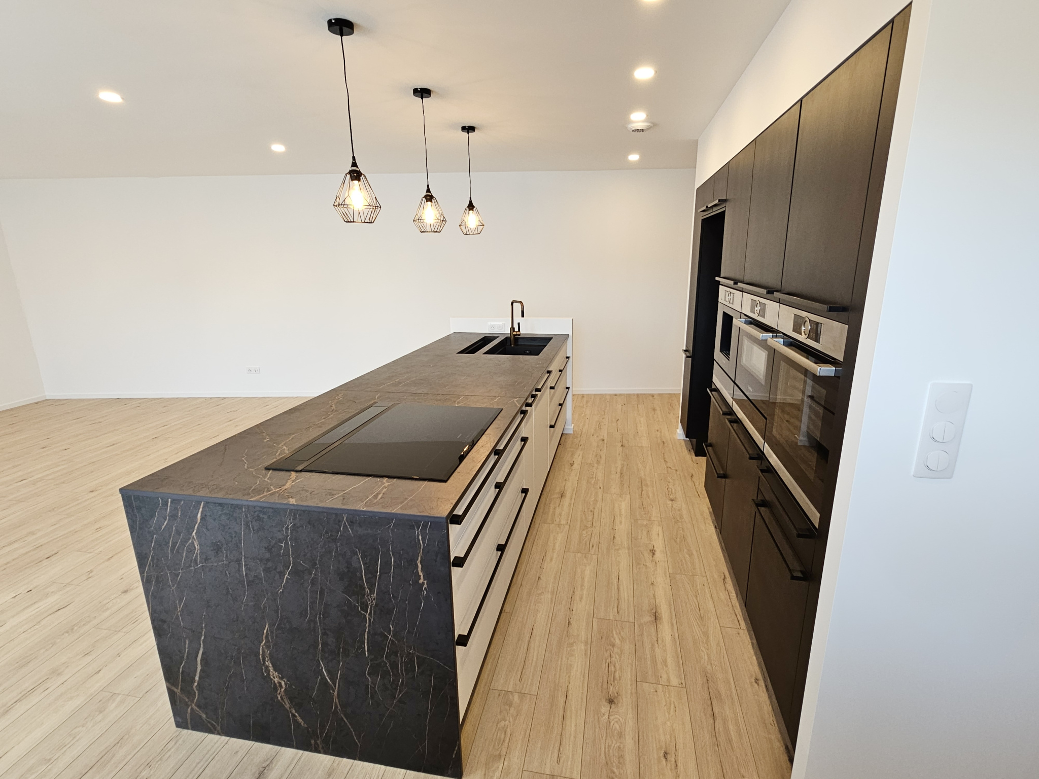 Dès l’entrée, vous serez séduit par une superbe pièce de vie spacieuse et lumineuse, ouverte sur une cuisine contemporaine entièrement équipée avec plan de travail Dekton et électroménager encastré complet : four, micro-ondes, lave-vaisselle, chauffe-plats et machine à café intégrée.